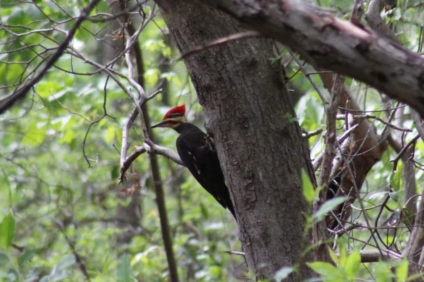 - A pileated woodpecker, not making a single sound. It isn't even drumming. That's crazy.