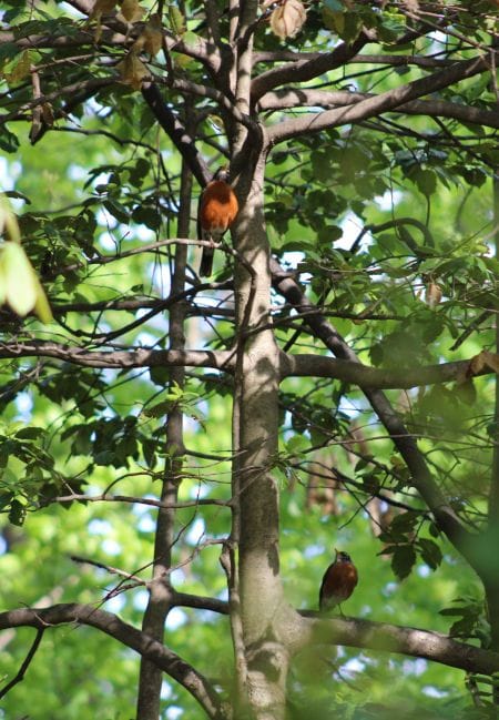 There were about eight of them, a robin on every branch, all looking up and screaming, It was eerie.