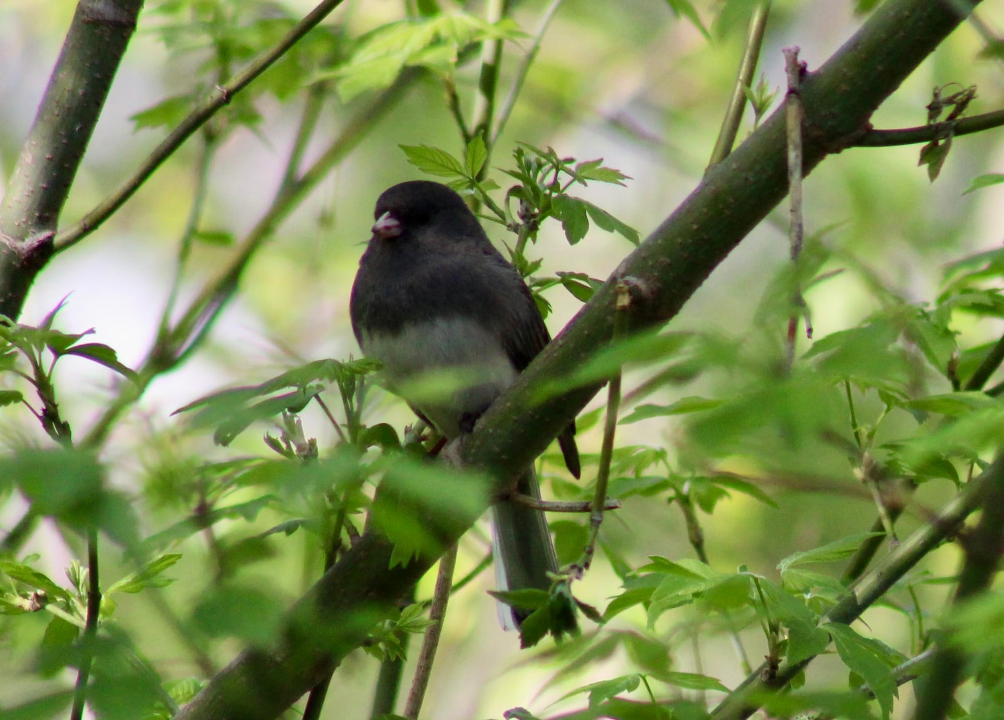 - That junco looks like a parrot or some other exotic BOTD in all that green. They are winter birds. When I see them on a green summery day I always remark it.