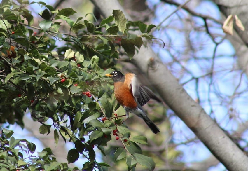 - The winterberry holly tree has robins, waxwings, and a cardinal in it right now, nibbling away. An abundance. For them and for me.