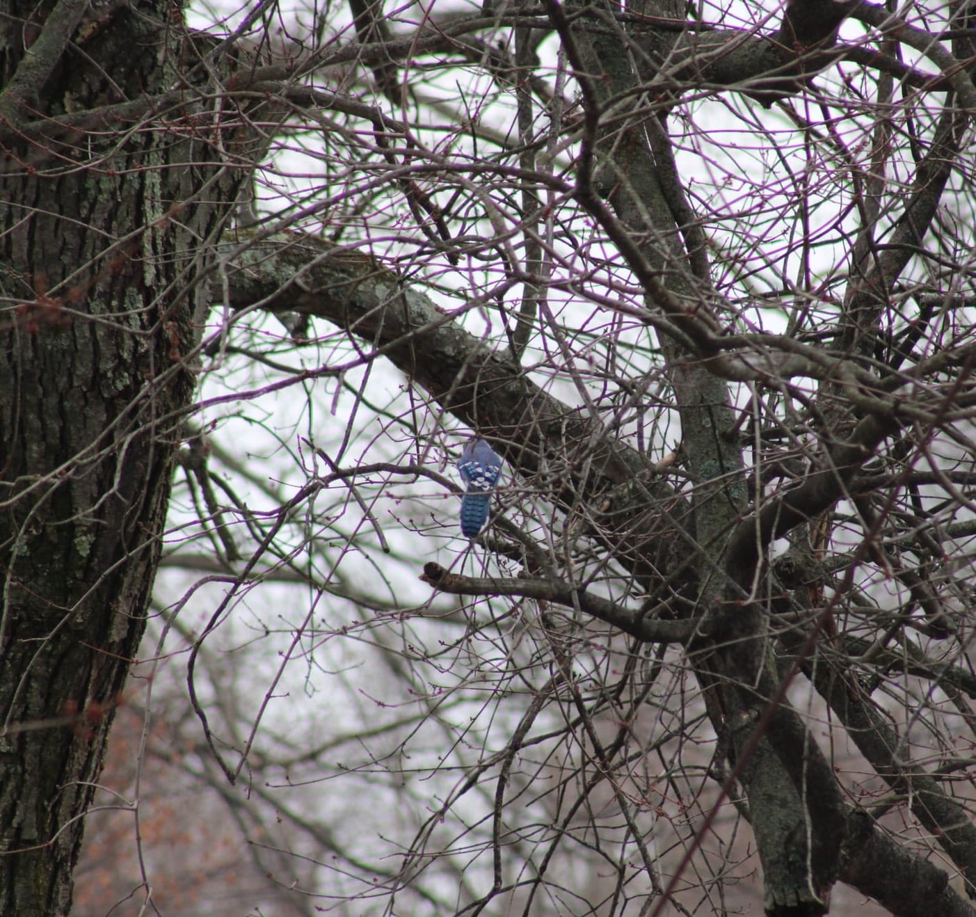 - A blue jay! He'll be long gone by the time I reach that tree for a close up, but what a lovely little pop of color on this grey day.