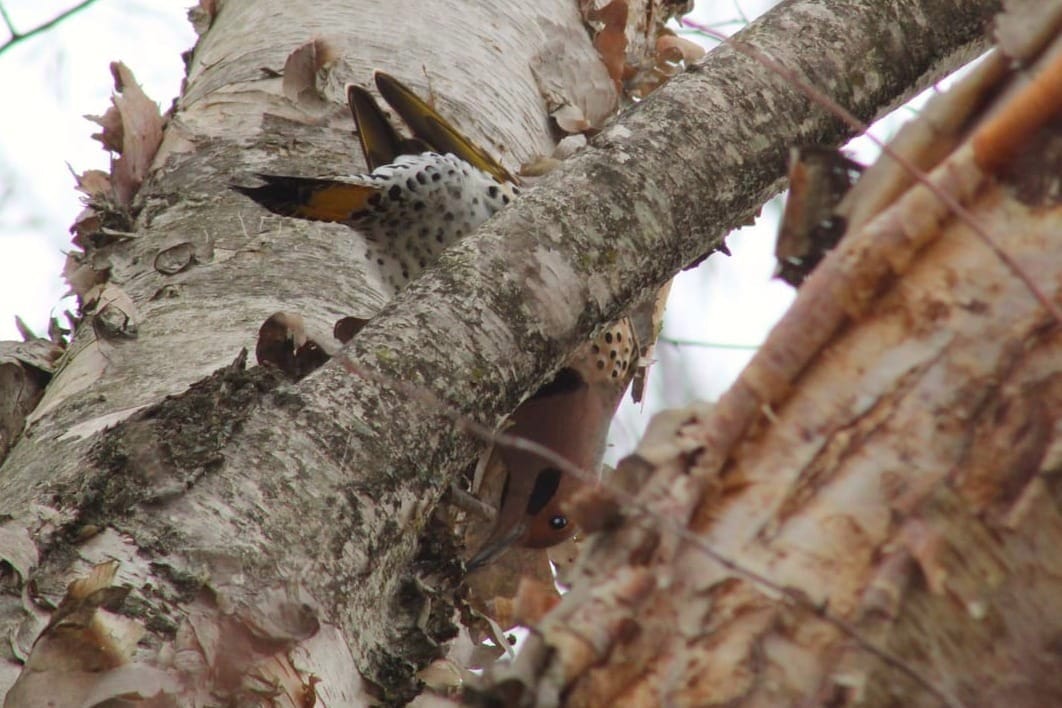 BOTD: Northern flicker. I was really torn on whether I should brighten up that featured image up top, but ultimately went for the authentic, unedited experience. It was gray and depressing out and is likely to be so all week, and I suffer without sunshine, so everyone else has to, too. The northern flicker is a distinctive and unique bird, but not an especially vibrant one, so seeing that splash of yellow and the red headband really brightened up my morning.