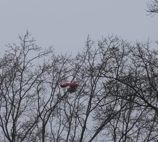 - I am having to use my binoculars for every identification today, with only the silhouettes to go on. The only pop of color are three slowly deflating heart shaped balloons at the top of one of the tallest trees. There is certainly no reason to find this depressing.