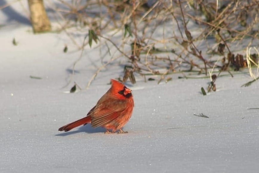 - Not that I don't already have a current obsession. The female cardinals all had a meeting and decided to defy me. This is genuinely the least obstructive view I could get from the sidewalk, around all the still snowbound cars and three-foot-tall snow berms. Tell me she didn't do this on purpose.