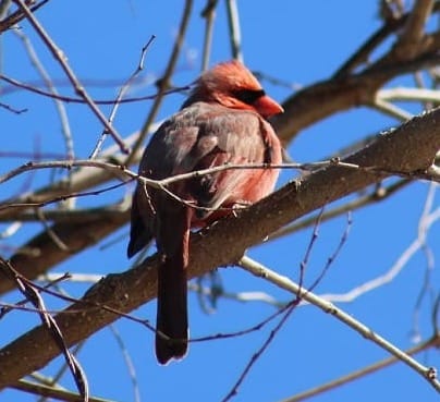 BOTD: northern cardinal, that particular one. This guy has been singing every single time I've seen him for weeks, and today there was a female cardinal in the tree next to his tree. They didn't look like they were together, the way the bonded pairs do, but they might be headed that way? There were no other males around, at least. He looked for all the world like a teenager trying to keep her attention and slowly edge closer, without ever talking to her or looking her full in the face. I'm rooting for you, my guy.