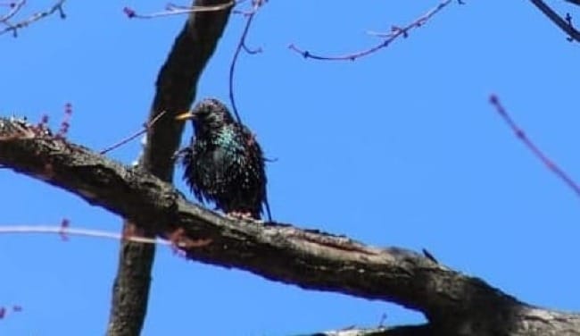- Of course, all this has just been background processes for a month and half, so it is very easy to put it all aside and watch a small murmuration of starlings circle between the broad lawn of a church and the cables overhead several times in a cloud. They are all looking more imaginary than usual in the bright sunshine, all polka dots and glitter and iridescent green and copper.
