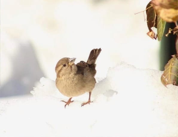 - Well, if it has to be a house sparrow, at least this one is playing in the snow and being very cute.