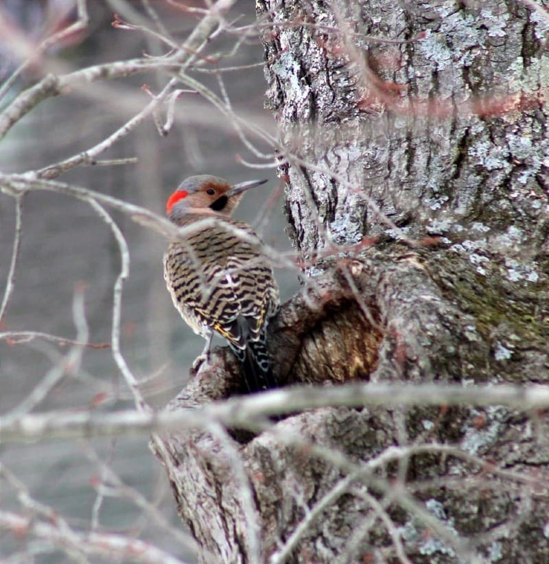 - And the flicker left from the other side of the tree at the same time, so I did not catch his yellow under tail feathers. I believe they are working together to stress and to spite me.