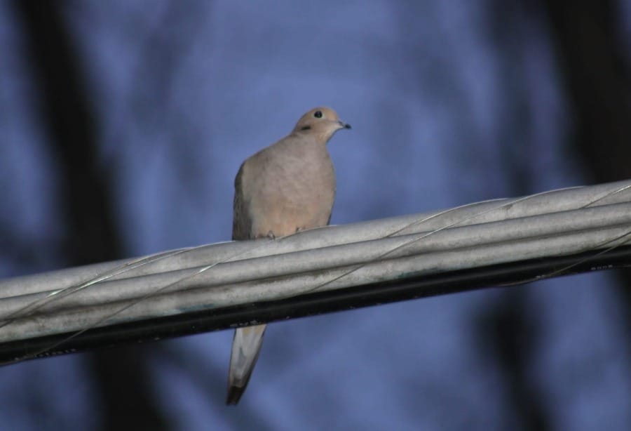 - There are mourning doves...everywhere? Every bird I see right now is a mourning dove, in the trees, in many trees, I can count eleven on the power line across the road. They look very spooky now that I am really am losing the light.