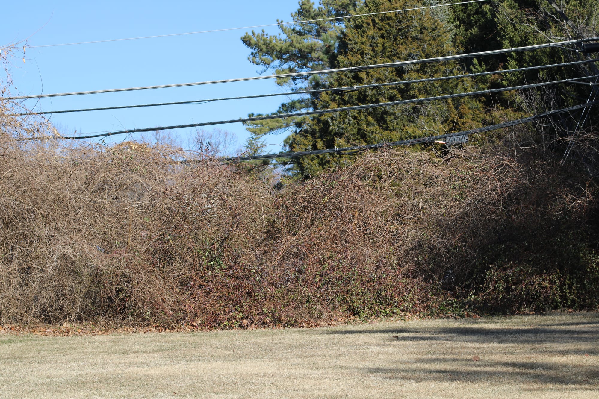 - There is no way to get a photo of how long this hedge is without including 3 identifying markers and road signs. I am not unduly worried about being murdered by one of my 30 subscribers, most of whom are on my Christmas card list, but still I must balk at an actual green sign with cross streets, I think. The hedge is about twice as long as this photo shows, and there are two trees with berries of some sort at the left-hand end.