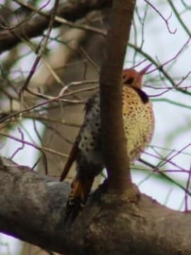 - That northern flicker is going to stay right behind that tallest limb, isn’t he. I vilify them. I revile and rebuke them.