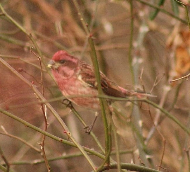 I'm calling it. I am making the ID. That is a purple finch, and a lifer. He looks just like his picture.