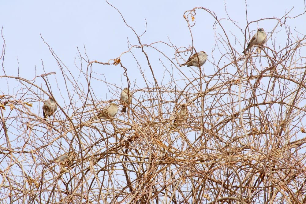 - The sparrows are having a meeting about the weather.