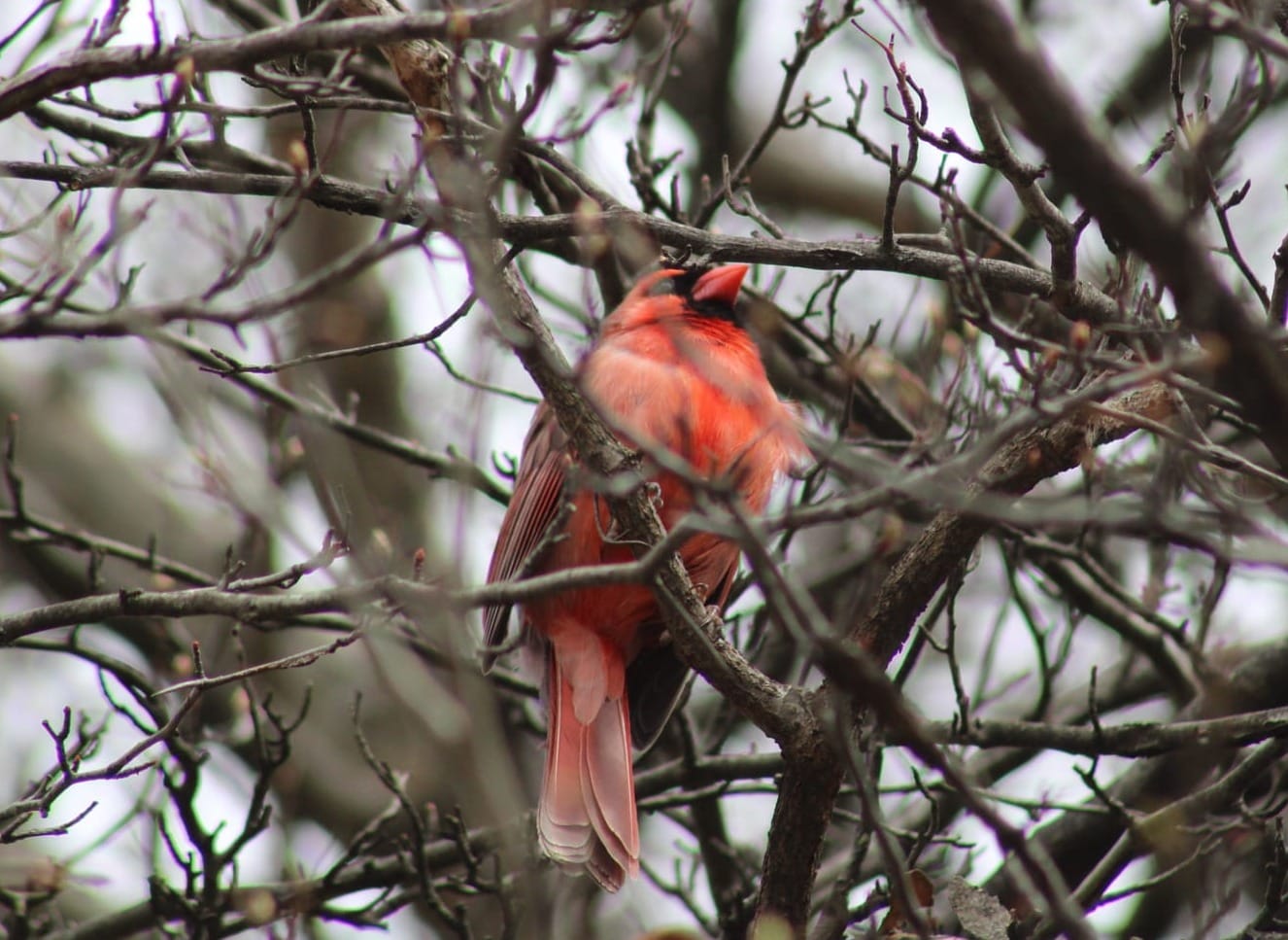 - Now that’s a weirdly colored cardinal, but I don’t think it’s Pinky. So maybe the pale gray and white is just normal spring molt.