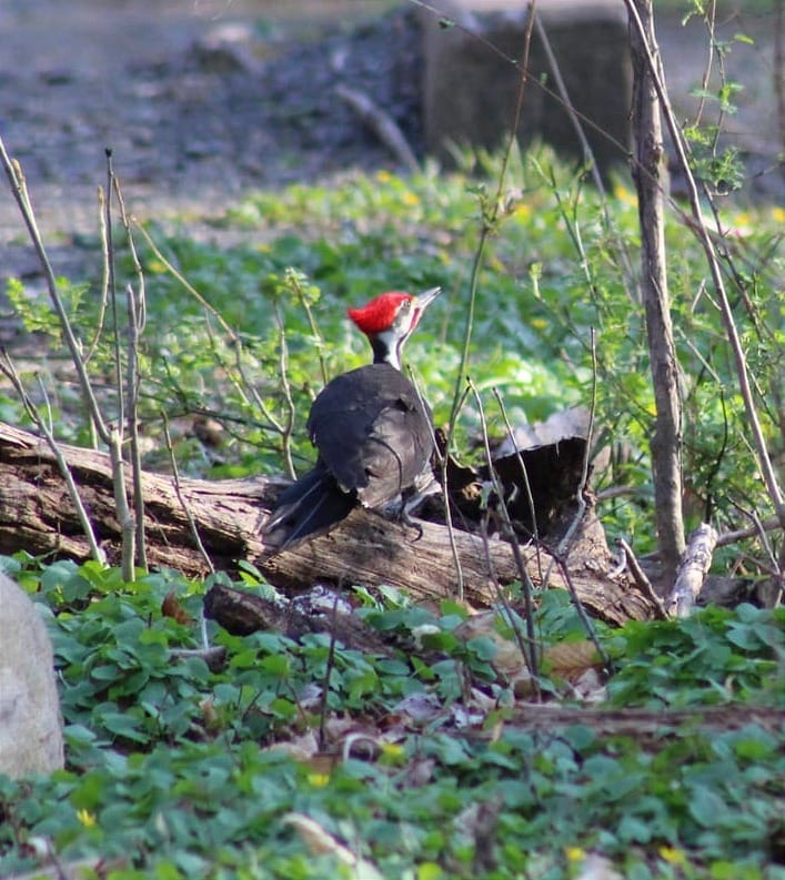 - I cross over the bridge after this pleasant exchange and immediately encounter a pileated in the road. Annnnnnd, there’s the other one. I was sure I was correctly informing that woman, but now I want to find her and say “Oh, wait, my bad, I just hadn’t seen them yet!’