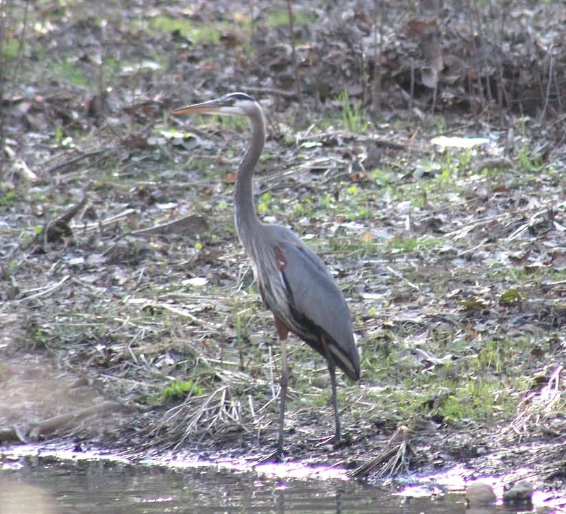 Bird Species: American robin, hairy woodpecker, Carolina wren, Carolina chickadee, northern cardinal, eastern bluebird, European starling, pileated woodpecker, great blue heron